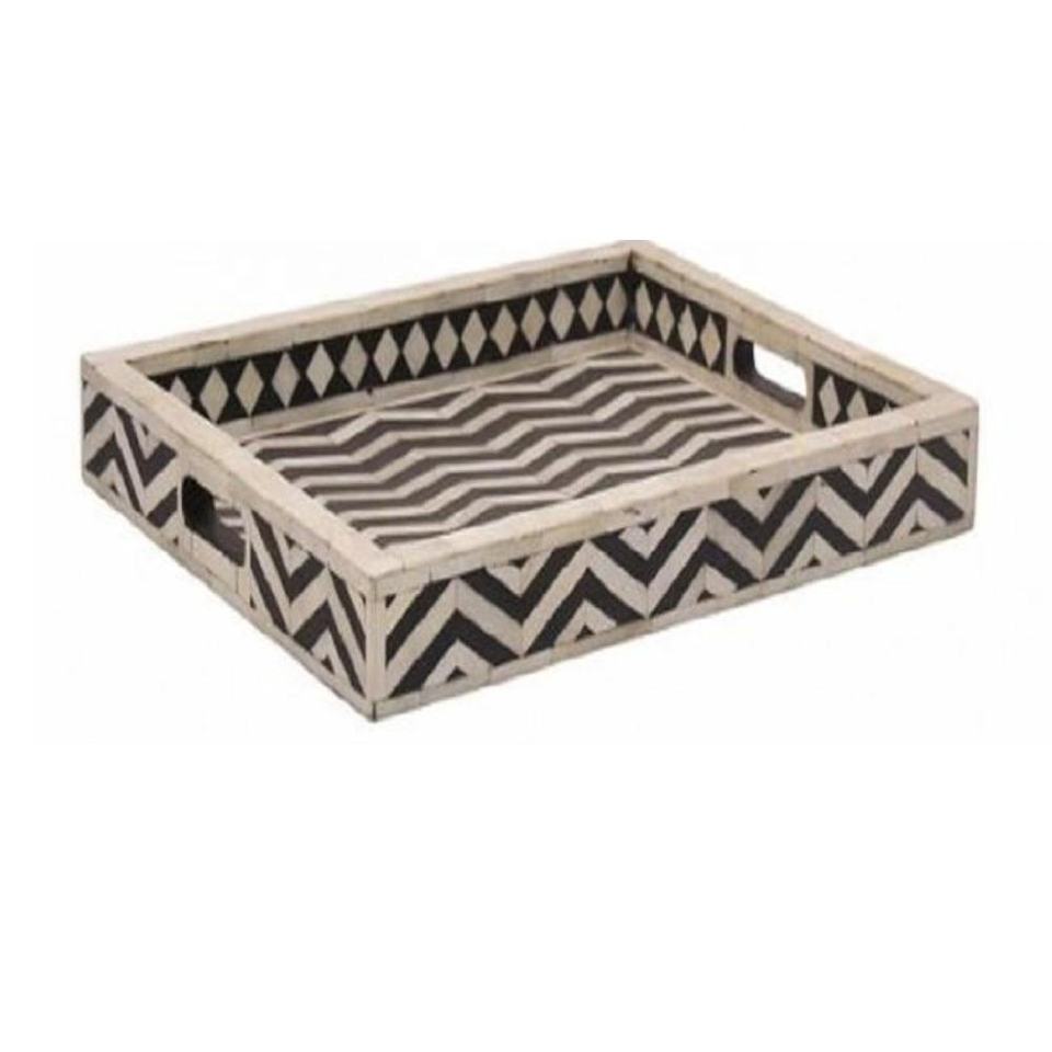 ถาดออกแบบลายสี่เหลี่ยมทำด้วยมือถาดวางบนโต๊ะกาแฟถาดบนโต๊ะสำหรับห้องครัวใช้เป็นเอกลักษณ์ถาดเสิร์ฟเครื่องดื่มงานฝีมือกระดูกสำหรับตกแต่งบ้าน