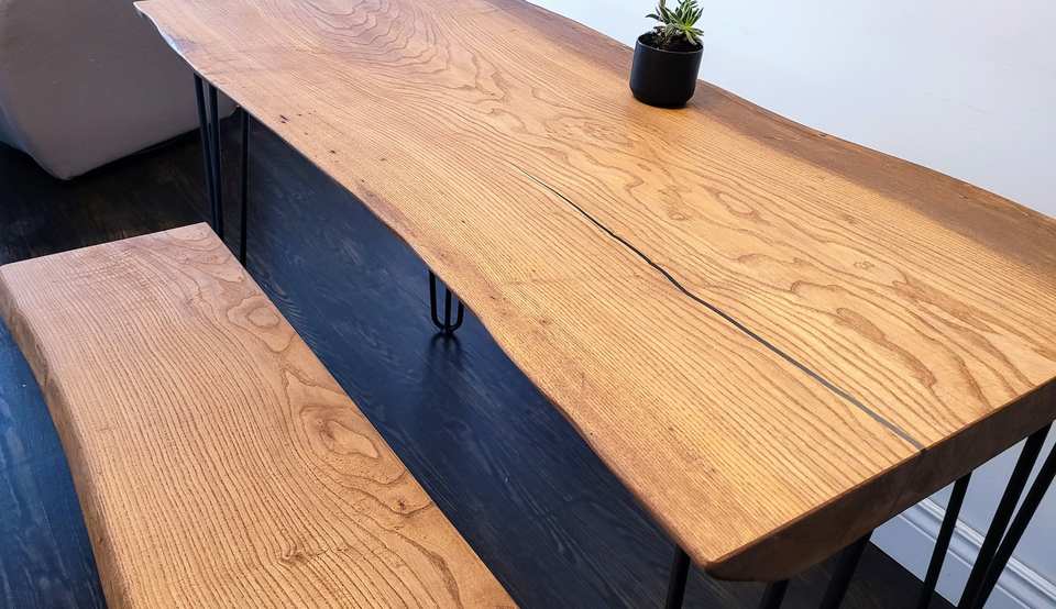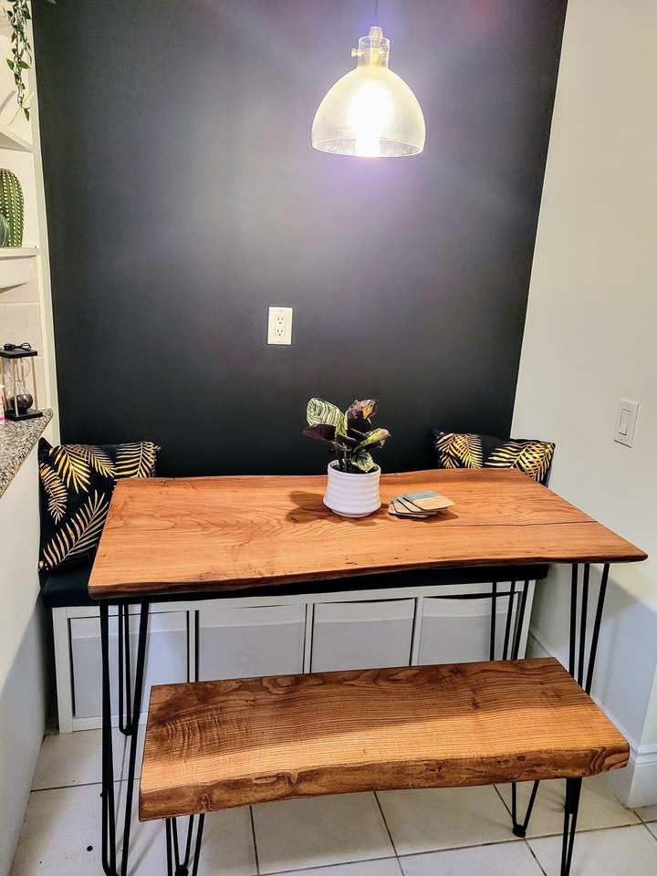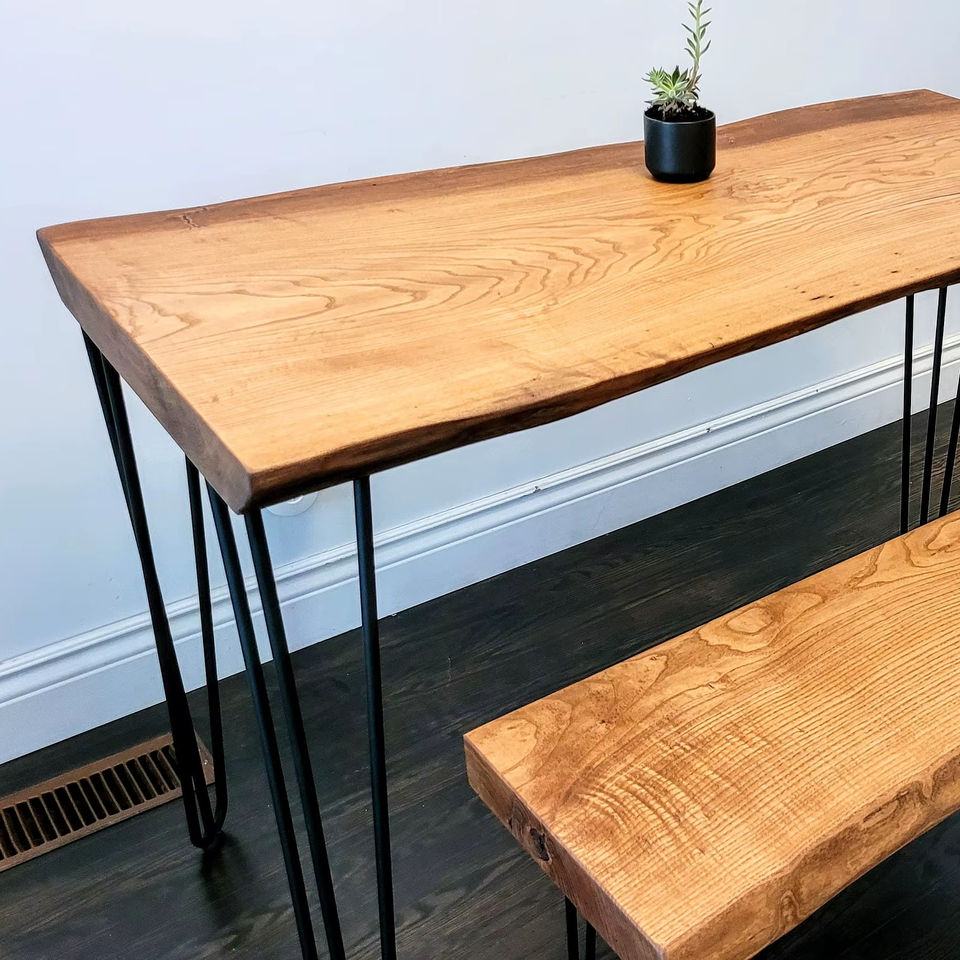 โต๊ะอาหารไม้จริงทรงสี่เหลี่ยมขอบธรรมชาติ ทำมือ พร้อมขาเหล็กทรงแฮร์พิน สไตล์เรียบง่ายทันสมัย เฟอร์นิเจอร์ห้องครัวและห้องรับประทานอาหาร