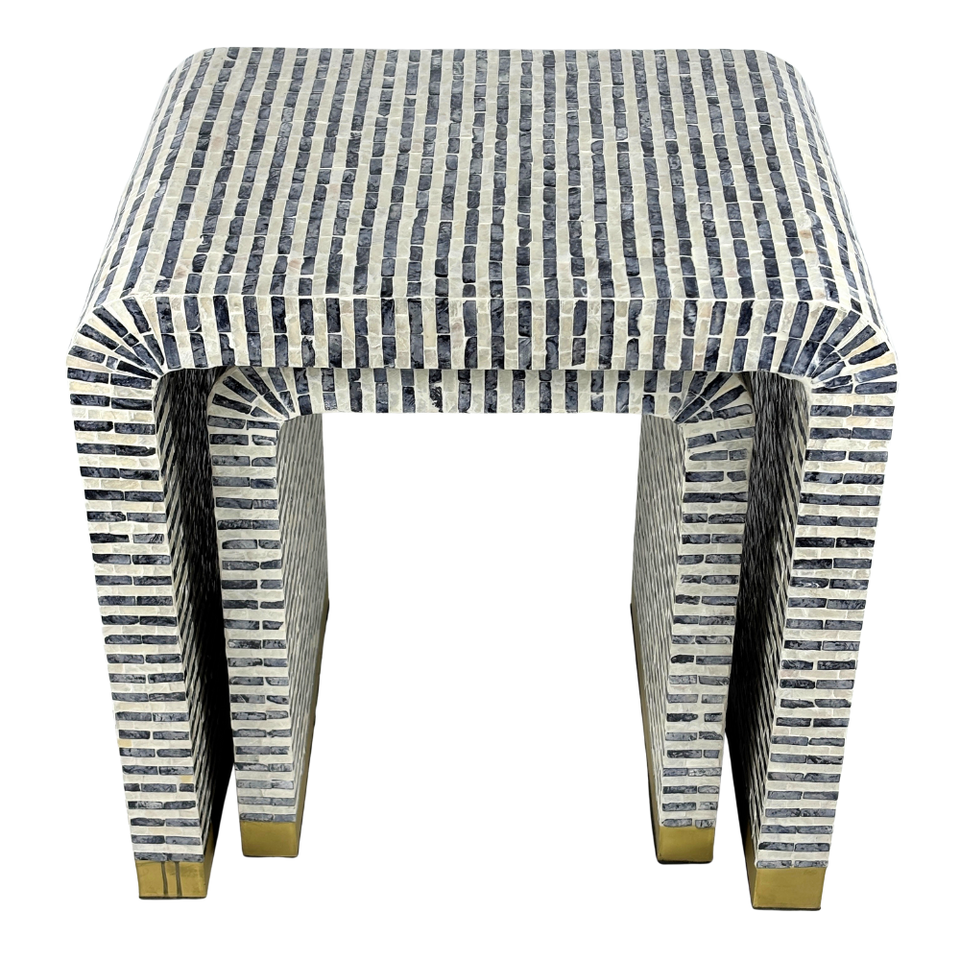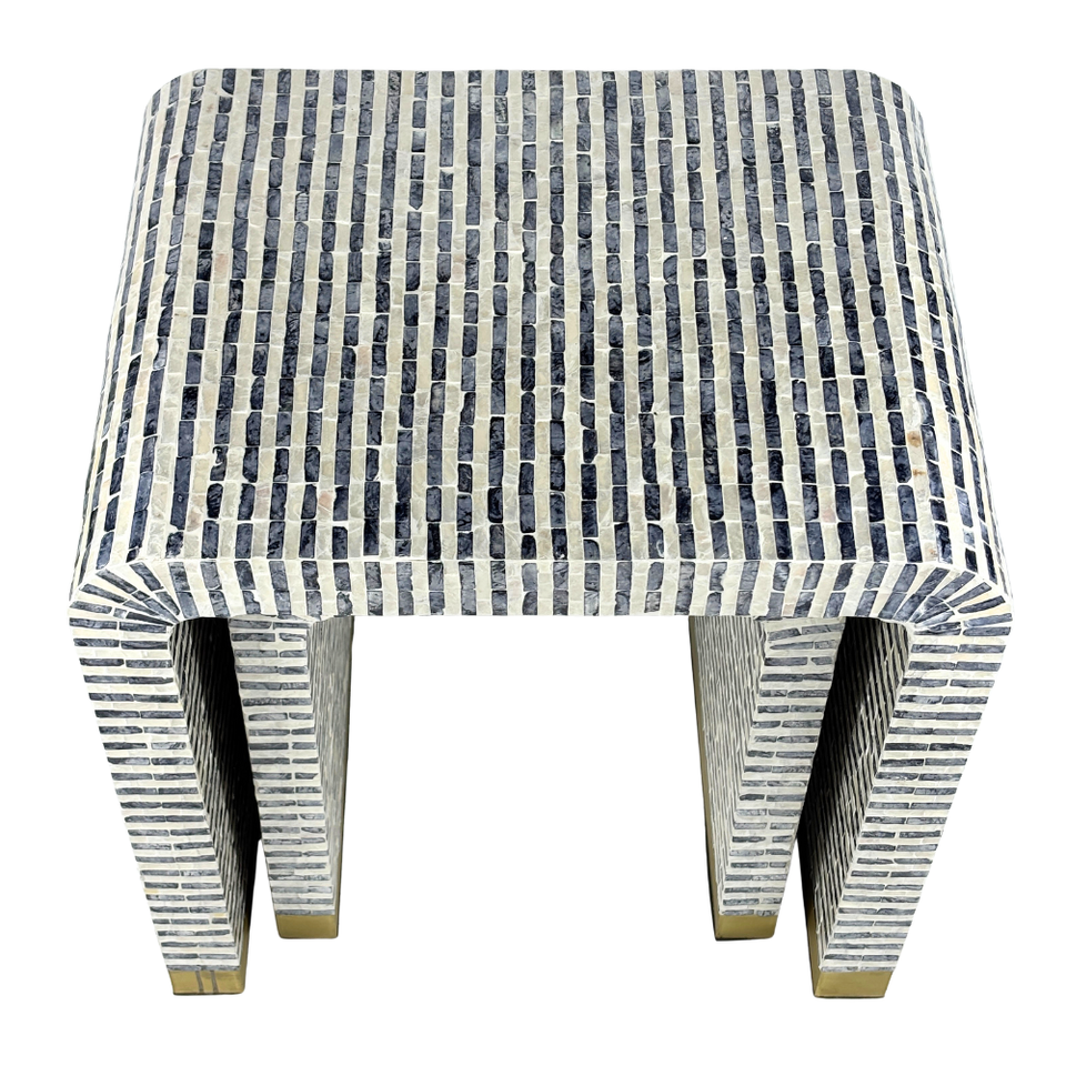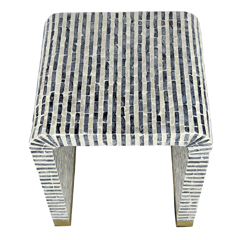 MDF capiz แบบทำด้วยมือม้านั่งแบบฝังลายทางแนวตั้งสีฟ้าขาวสำหรับตกแต่งบ้าน