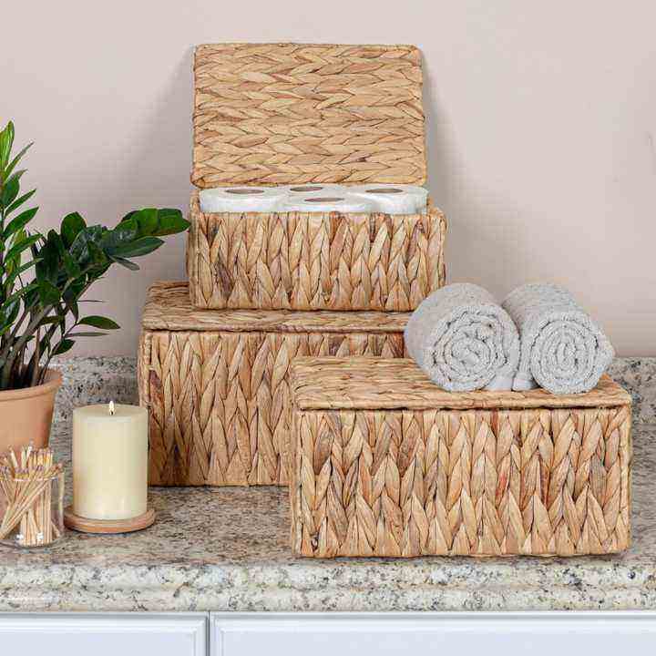 ตะกร้าหวายสานจากหญ้าทะเลทรงสี่เหลี่ยมทำด้วยมือจากไม้ไผ่สานเวียดนาม