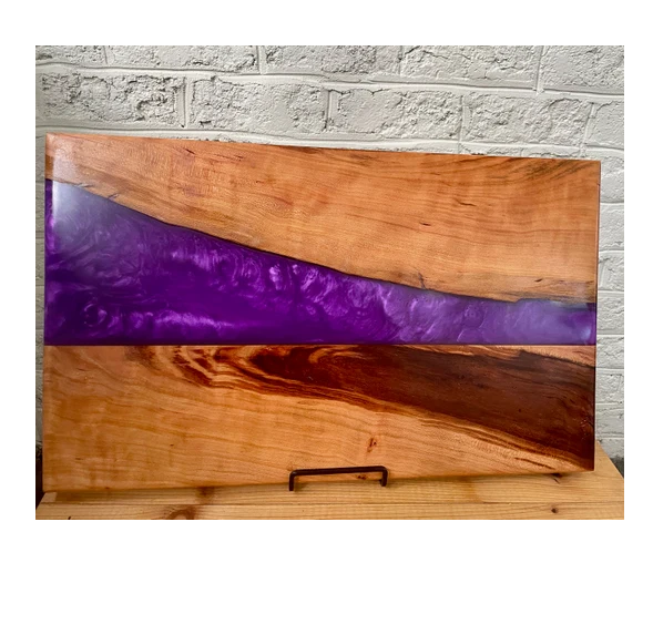 เขียงไม้และเรซิ่นอีพ็อกซี่ทรงสี่เหลี่ยมทำมือ สำหรับหั่นผลไม้ ผัก และเนื้อสัตว์ เขียงคุณภาพสูงสำหรับอุปกรณ์ครัว