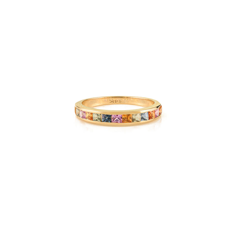 แหวนทองคำ 14K สีเหลือง ประดับพลอยหลากสีแบบเรียงซ้อน ดีไซน์เรียบง่าย สไตล์ยูนิเซ็กส์ รุ่นครึ่งวง งานแฮนด์เมด