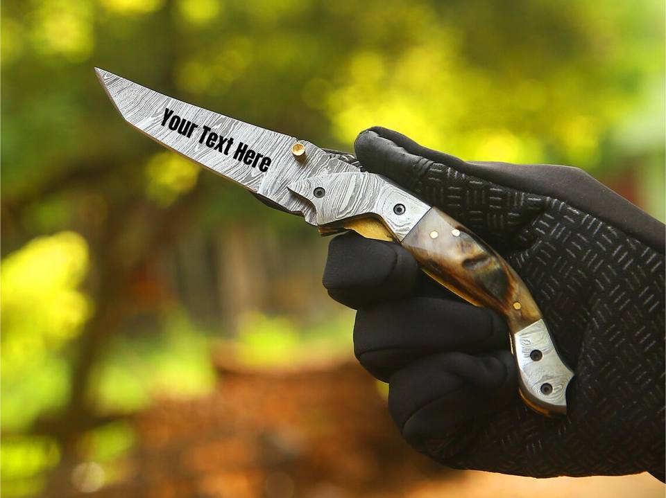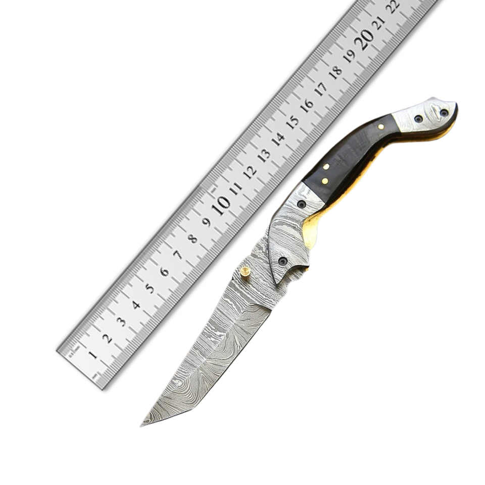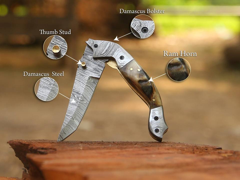 มีดพับทำมือจากเหล็กดามัสกัสสแตนเลส สำหรับเอาตัวรอด ล่าสัตว์ EDC พร้อมปลอกหนัง คมกริบพิเศษ 58HRC ขายส่ง B2B สินค้าขายดี DIY