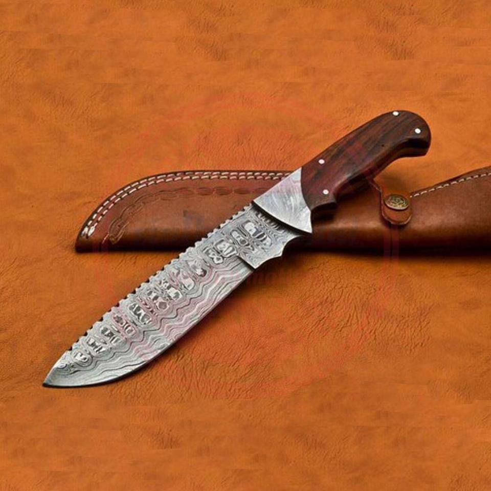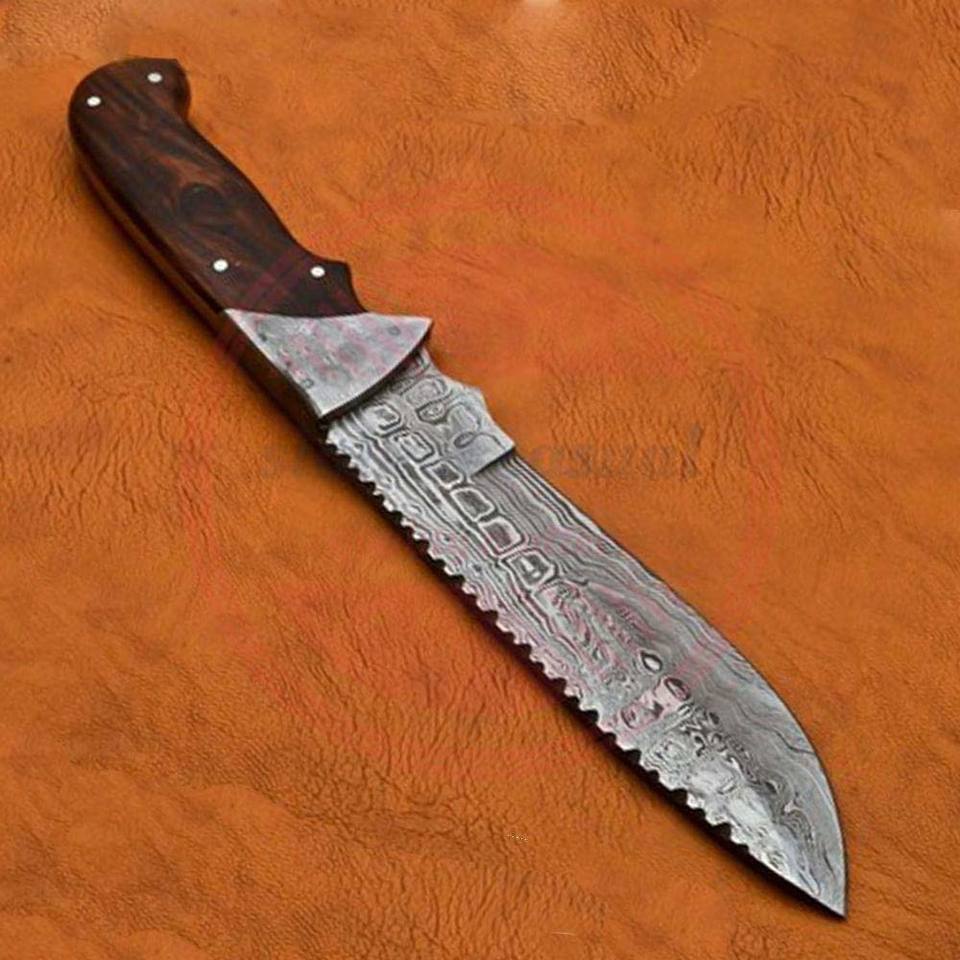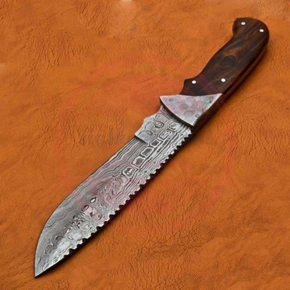 Handmade สแตนเลสใบมีดดามัสกัสมีดเชฟครัวพร้อมที่จับไม้และฝักหนัง