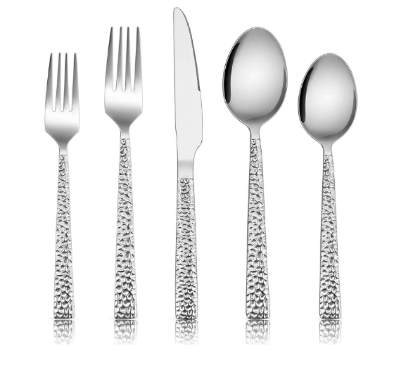 ชุดเครื่องใช้บนโต๊ะอาหารสแตนเลสงานแฮนด์เมดชุดเครื่องใช้บนโต๊ะอาหารชุบเงินประกอบด้วยช้อนและส้อมสำหรับงานแต่งงานและงานอีเวนต์