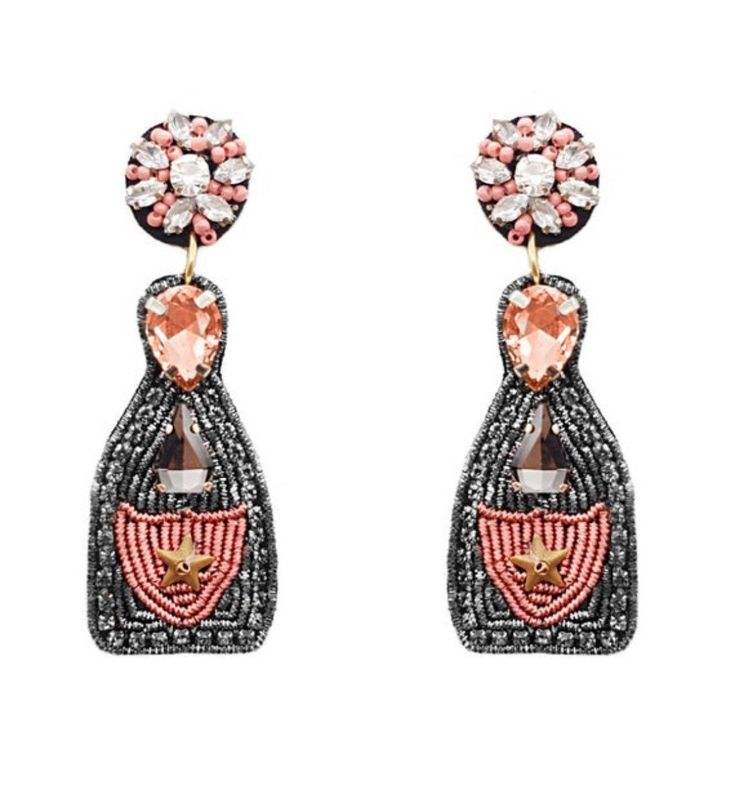 ต่างหูลูกปัดเม็ดแชมเปญปักลวดลายทำด้วยมือพร้อมแฟชั่นใหม่สวยงาม