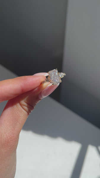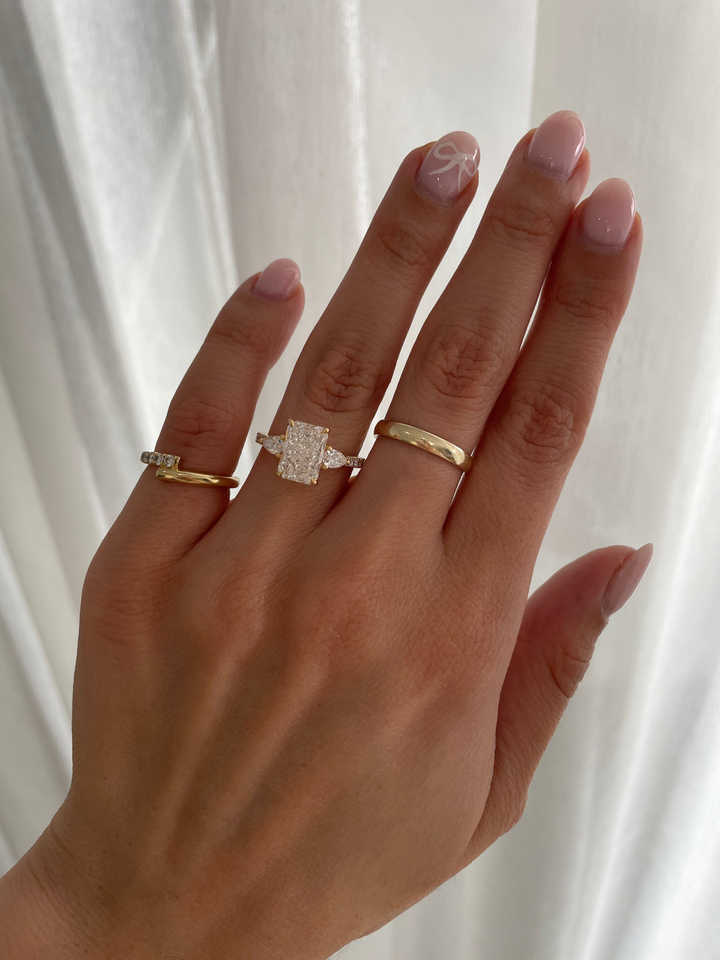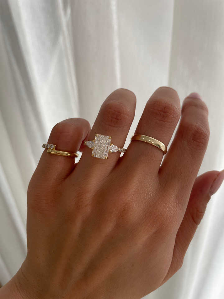 เครื่องประดับทำด้วยมือเครื่องประดับเพชรที่ปลูกในห้องปฏิบัติการแหวนไตรภาคเปล่งประกายทอง18K แข็งดีที่สุดสำหรับของขวัญวันครบรอบ