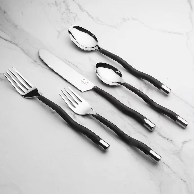 ชุดช้อนส้อมเหล็กงานทำมือพร้อมดีไซน์หยักชุดเครื่องใช้บนโต๊ะอาหารที่เป็นมิตรต่อสิ่งแวดล้อม5ชิ้นสำหรับตกแต่งงานแต่งงาน