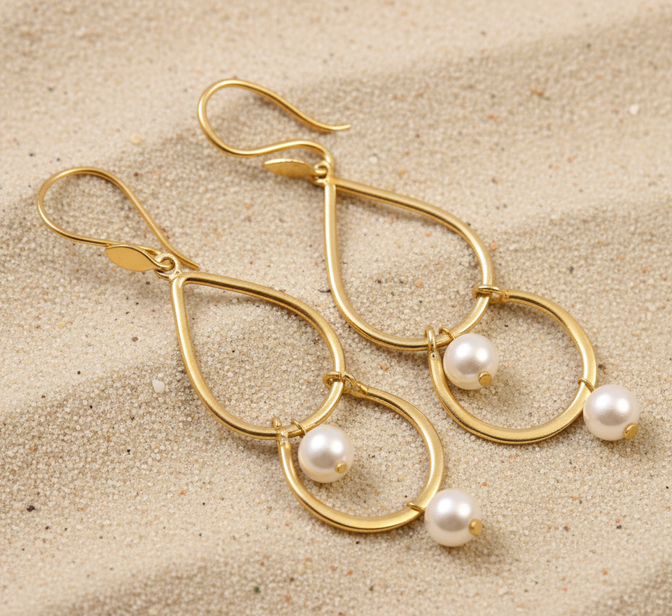ต่างหูเงินแท้ 925 ประดับมุกน้ำจืด ดีไซน์น่ารัก สไตล์คลาสสิกสำหรับผู้หญิง ชุบทอง