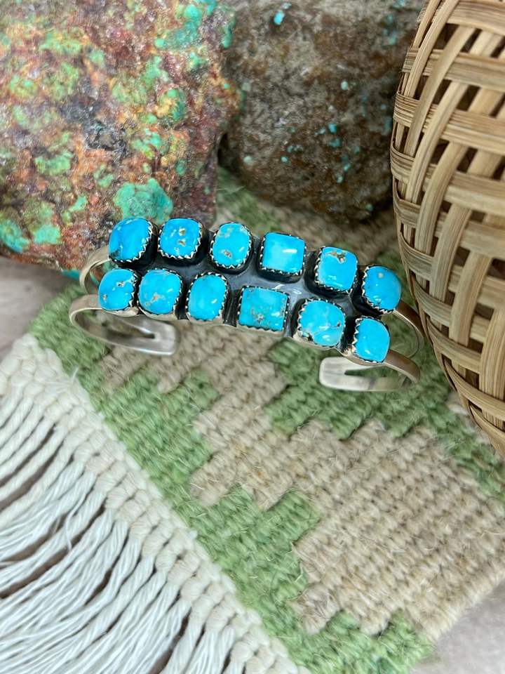 สร้อยข้อมือทำด้วยมือเงินสเตอร์ลิงสีน้ำเงินเทอร์ควอยซ์เครื่องประดับอัญมณีธรรมชาติของขวัญสำหรับผู้หญิงและเด็กผู้หญิง