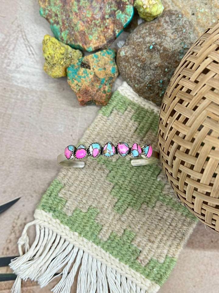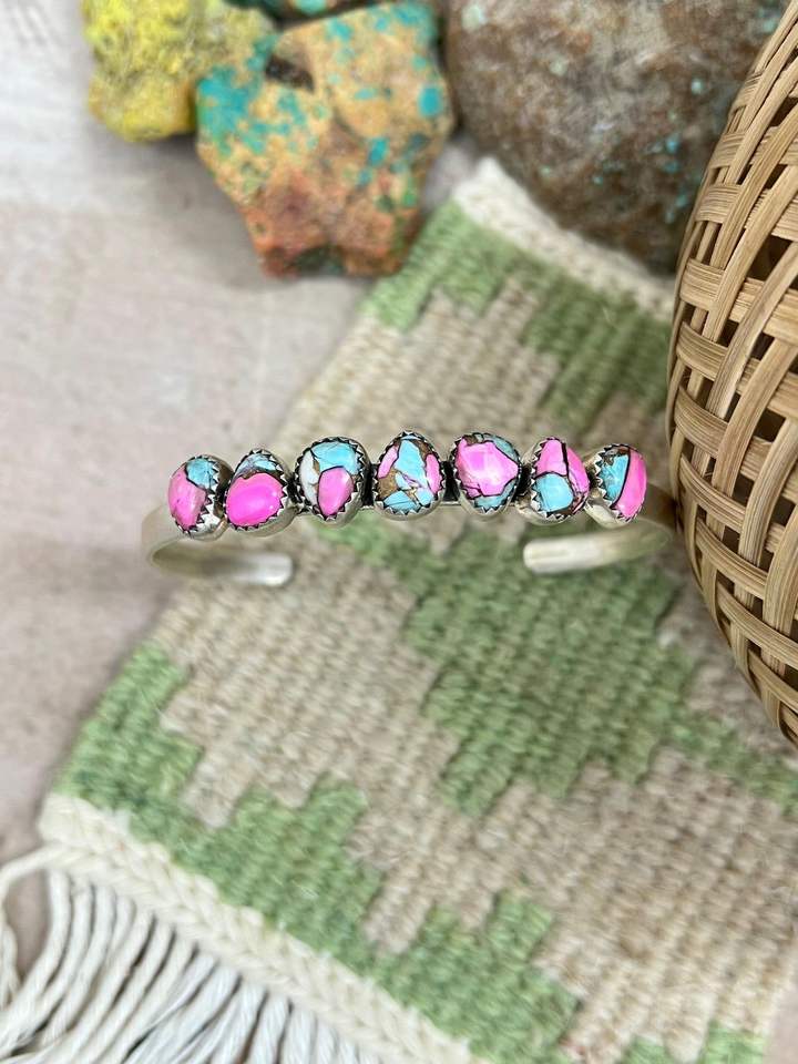 กำไลข้อมือเงินแท้ทำมือประดับด้วยเทอร์ควอยซ์ทรงคอตตอนแคนดี้ สไตล์โบฮีเมียน ของขวัญเครื่องประดับสำหรับเธอ ให้ลุคที่สง่างาม
