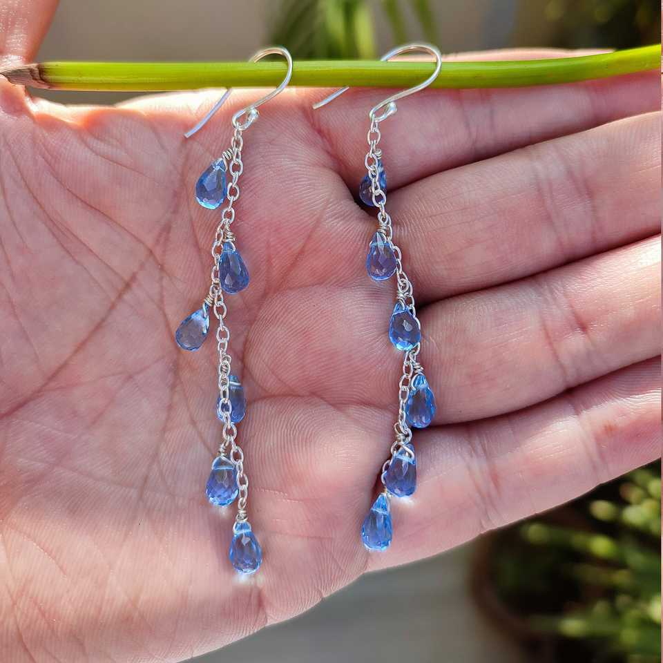 ต่างหูเงินแท้ทำมือประดับด้วยลูกปัดบลูโทแพซทรงหยดน้ำ ดีไซน์หรูหรา เหมาะเป็นของขวัญสำหรับเจ้าสาวในวันแต่งงาน