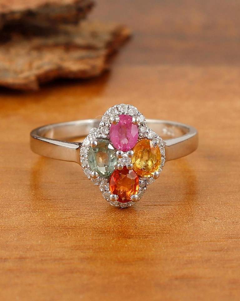 แหวนเงินสเตอร์ลิงทำด้วยมือแหวนเวอร์เมอิลเงินสเตอร์ลิงของขวัญวันเกิดที่ทำจากหินไพลินหลากสีธรรมชาติและฝังมุก