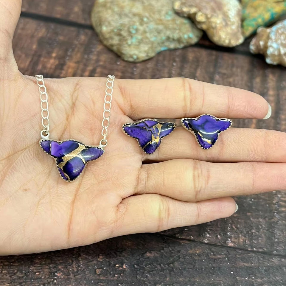 ชุดต่างหูสร้อยคอวัวดอกรักเร่ทำด้วยมือเงินสเตอร์ลิงองุ่นชุดเครื่องประดับหรูหราสำหรับผู้หญิงแฟชั่นที่มีเอกลักษณ์