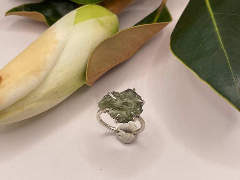 แหวนเงินแท้ทำมือประดับโมลดาวิทพร้อมพลอยธรรมชาติสำหรับผู้หญิง - ของขวัญสำหรับงานแต่งงานและสวมใส่ทุกวัน