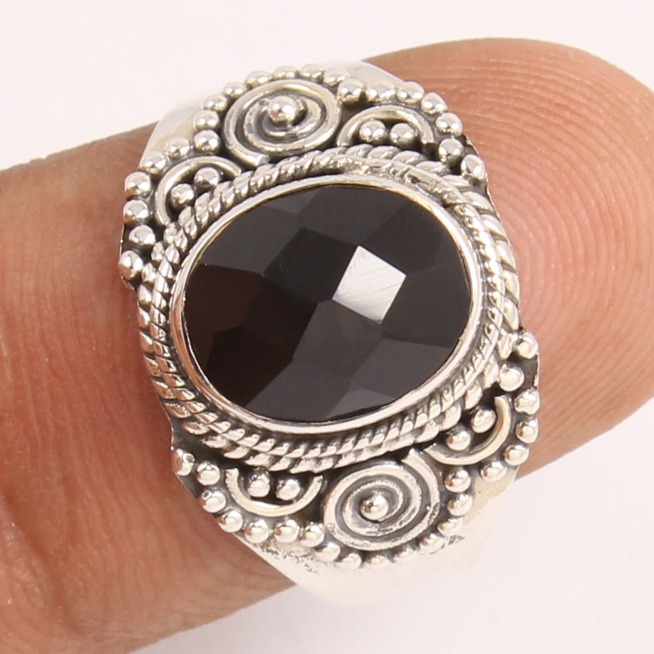 แหวนแต่งงานทำมือจากเงินแท้ประดับพลอยแบล็คออนิกซ์ทรงรีสำหรับผู้หญิงและเด็กผู้หญิง