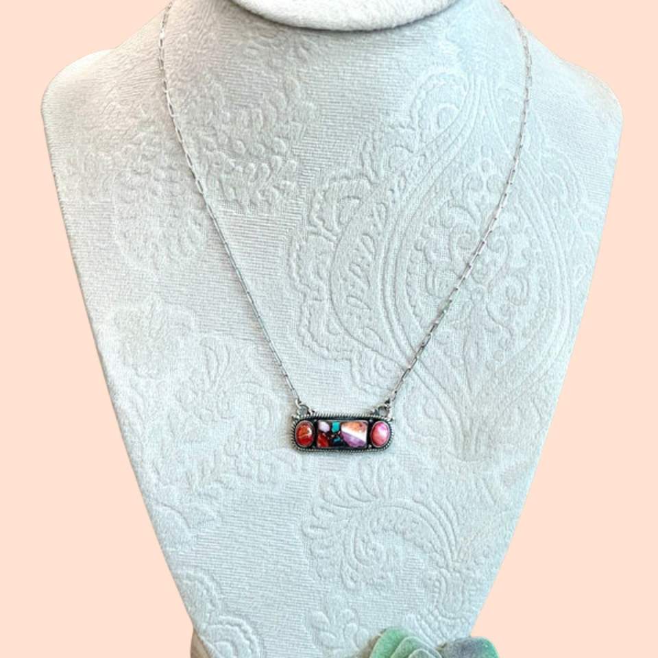 สร้อยคอแท่งสีชมพูเงินสเตอร์ลิงทำด้วยมือสวมใส่ทุกวันเครื่องประดับชนเผ่าจี้และโซ่
