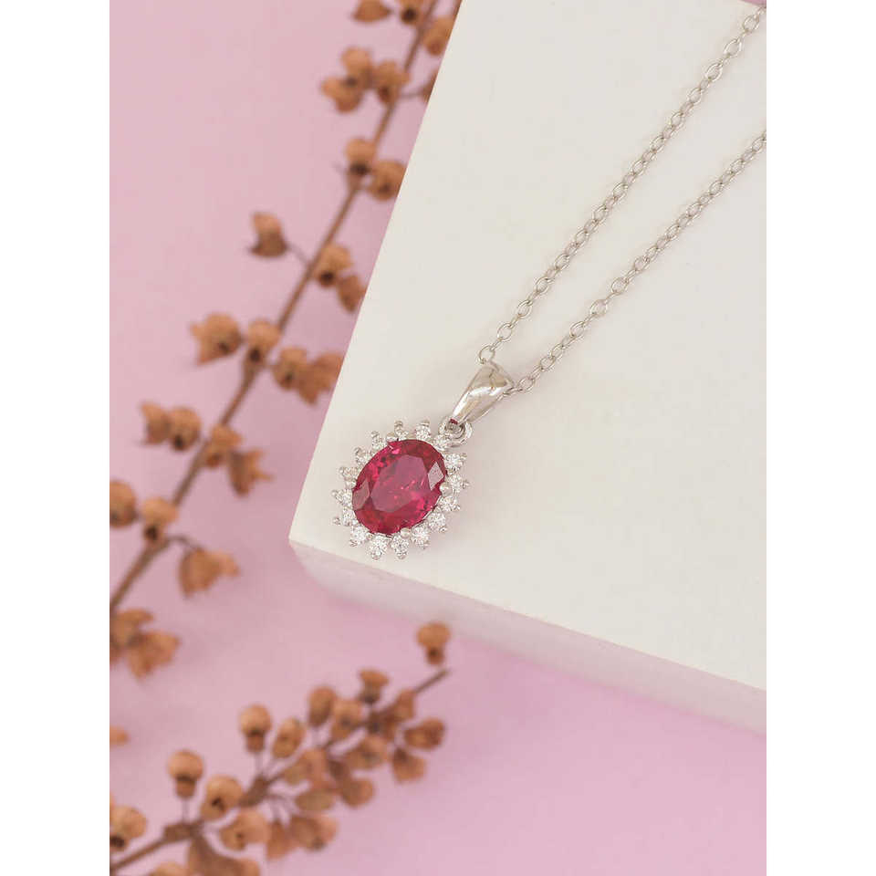 จี้รูปไข่ทับทิมสีแดงเงินสเตอร์ลิงทำด้วยมือจี้รูปหยดน้ำโรเดียมชุบโรสโกลด์วัสดุแพลทินัม