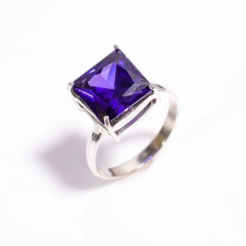 แหวนเงินแท้ทำด้วยมือพร้อมแหวนพลอยแซฟไฟร์สีฟ้าแบบมินิมอลลิสต์ของขวัญเครื่องประดับที่หรูหราสำหรับเธอ