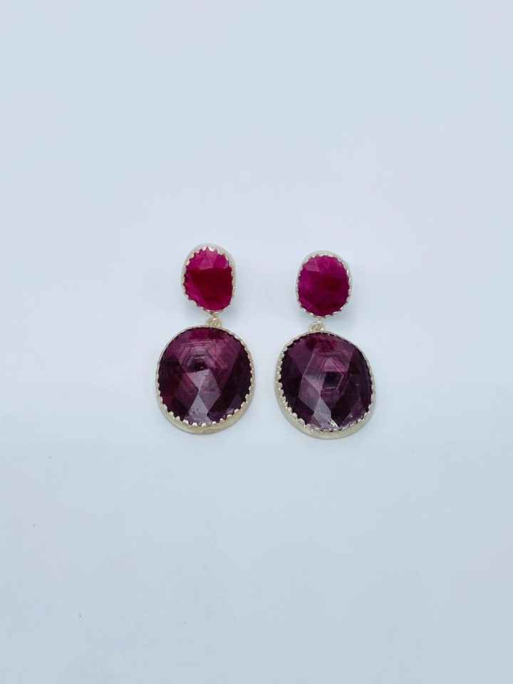 ต่างหูสตั๊ดทับทิมกับเครื่องประดับอัญมณีห้อยทับทิมเป็นประกาย