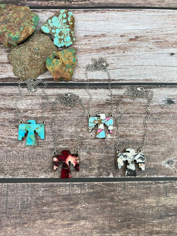 สร้อยคอเงินธันเดอร์เบิร์ดสเตอร์ลิงทำด้วยมือจี้หินหลายแบบพื้นเมืองเครื่องประดับชิ้นใหญ่