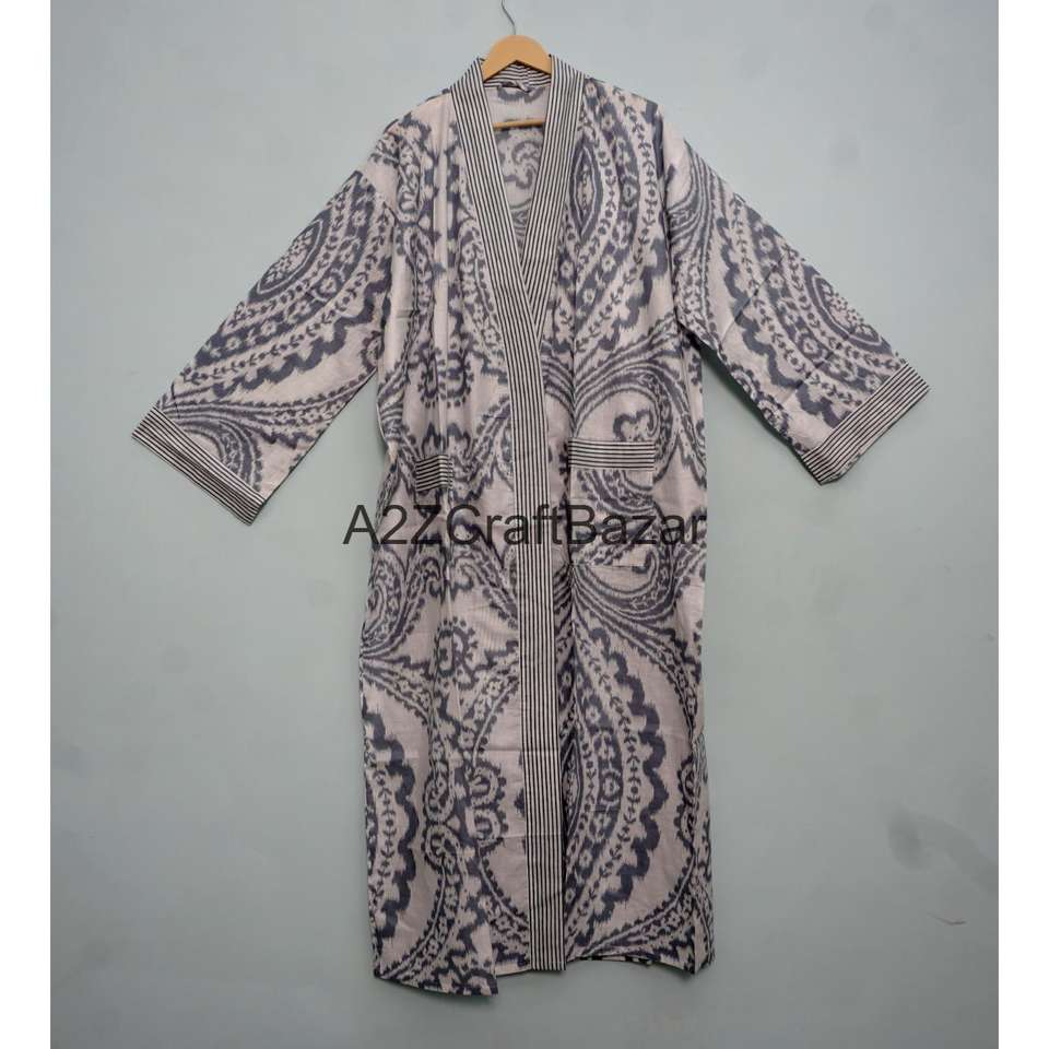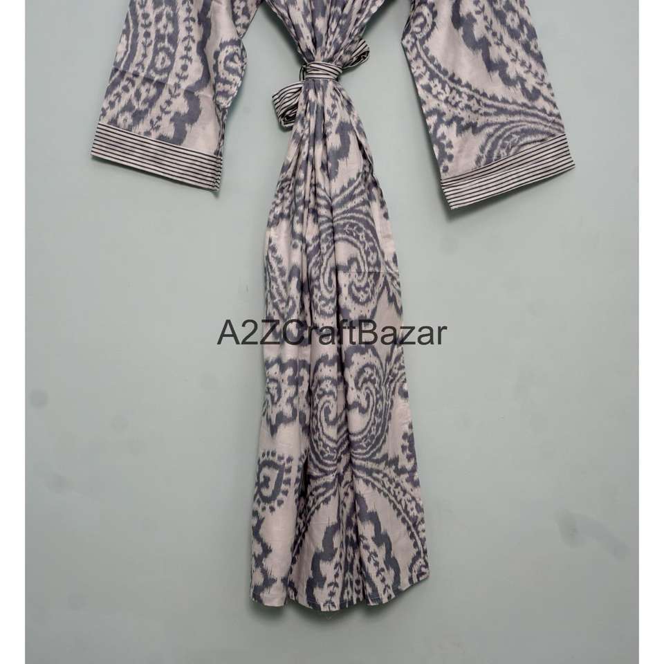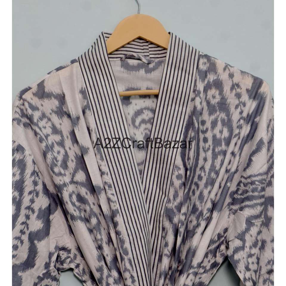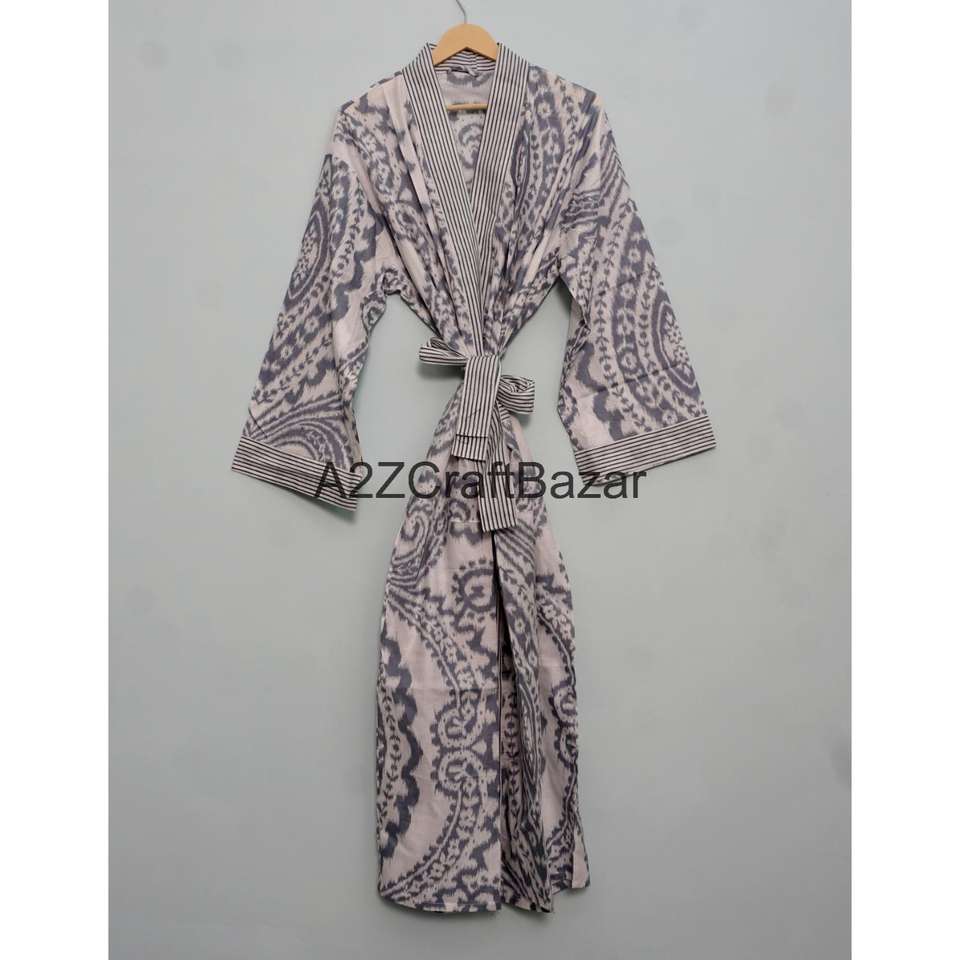 ชุดคลุมกิโมโนผ้าฝ้ายแท้ 100% ลายทาง สำหรับผู้หญิง งานแฮนด์เมด พิมพ์ลายดอกไม้ น้ำหนักเบา คอวี ผูกเชือก