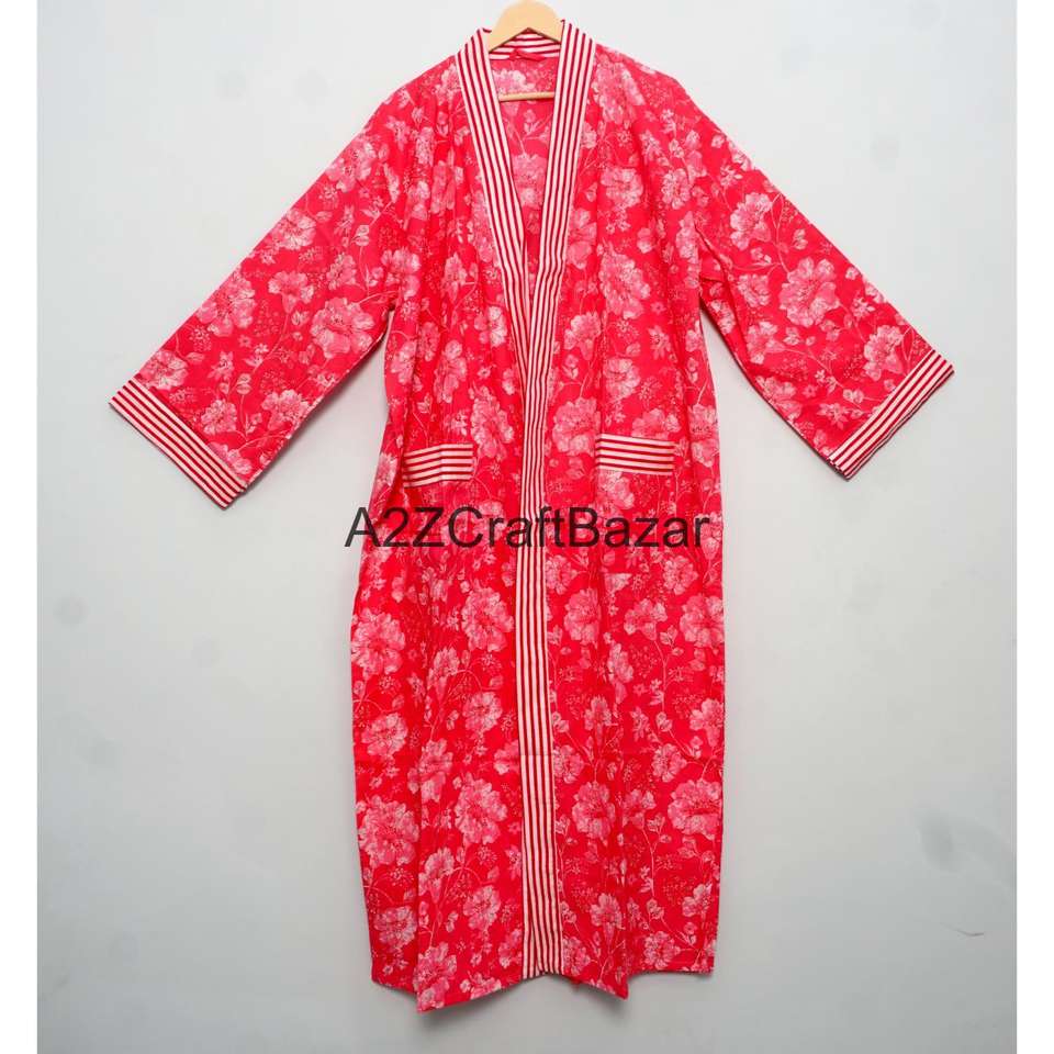 ชุดกิโมโนผ้าฝ้ายแท้ 100% ลายทาง สำหรับผู้หญิง งานแฮนด์เมด พิมพ์ลายดอกไม้ ชุดคลุมอาบน้ำ น้ำหนักเบา ชุดลำลอง ชุดนอน