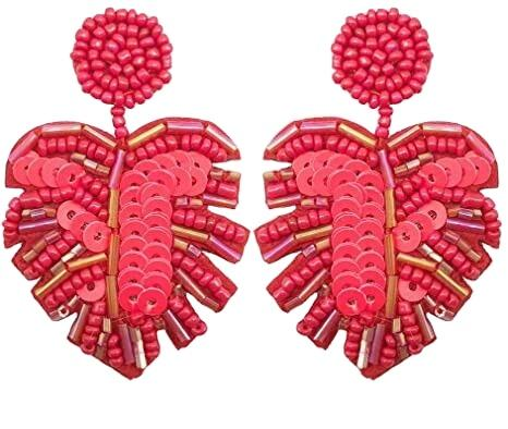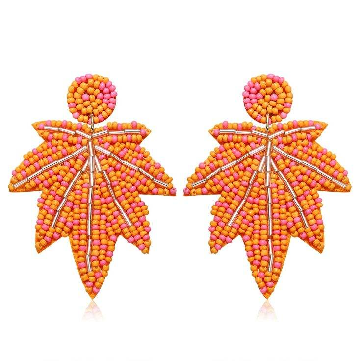 ต่างหูปักลายดอกไม้ใบไม้ประดับลูกปัด งานแฮนด์เมด ดีไซน์หรูหรา ตกแต่งสวยงาม