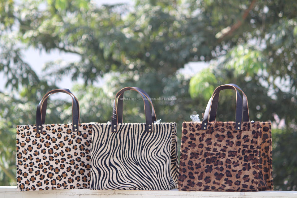Handmade Stylish Tote Bag Causal Cowhide Fur Leather Handbag Shoulder Bag