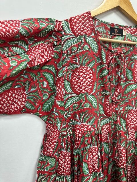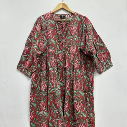 เดรสแม็กซี่ผ้าฝ้ายแฮนด์เมดฤดูร้อนชุดเดรสพิมพ์ลายดอกไม้งานแฮนด์เมดดีไซน์บล็อกด้วยมือ