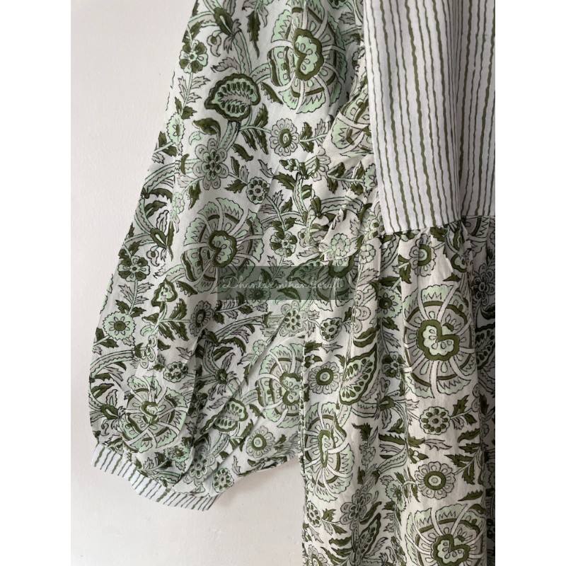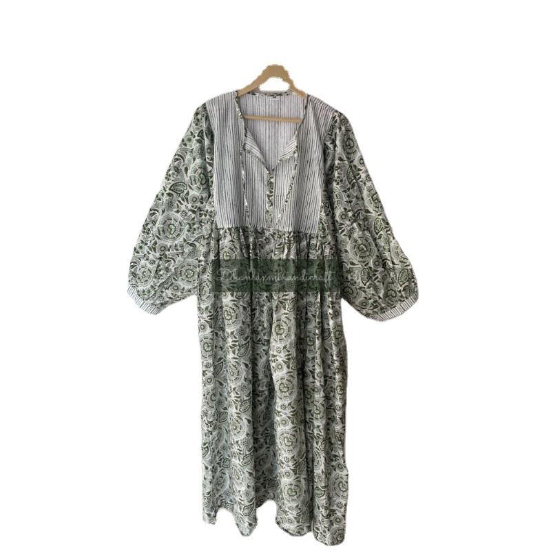 โบฮีเมียนฮิปปี้เดรสแม็กซี่ยาวสไตล์โบฮีเมียนสำหรับผู้หญิงเดรสพิมพ์ลายดอกไม้ลายทางลูกไม้หวานเอวธรรมชาติด้านหลังสำหรับฤดูร้อน