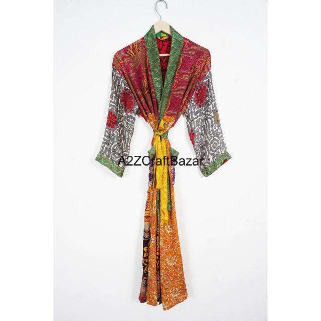 ชุดคลุมอาบน้ำฤดูร้อนทำมือ เย็บมือ ผ้าไหม ควิลท์ คันธา คิโมโน พร้อมเข็มขัด สไตล์โบฮีเมียน ฮิปปี้ ลายดอกไม้ สำหรับทุกเพศ ชุดนอนผู้หญิง