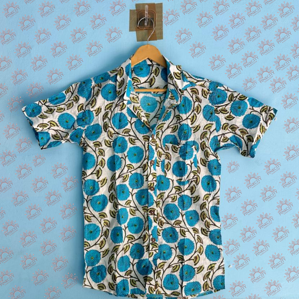 เสื้อเชิ้ตผ้าฝ้ายแขนสั้นของผู้ชายทำด้วยมือสำหรับฤดูร้อนพิมพ์ลายดอกไม้ชายหาดดีไซน์สบายๆสำหรับวันหยุดพักผ่อนหรือเที่ยวทะเล