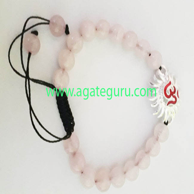 สร้อยข้อมือลูกปัดดวงอาทิตย์โอห์มทำด้วยมือโรสควอตซ์
