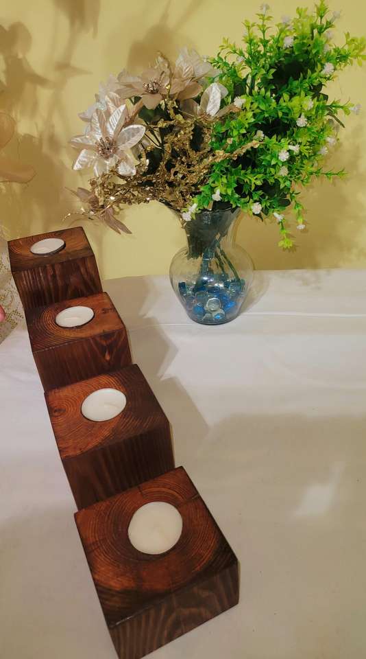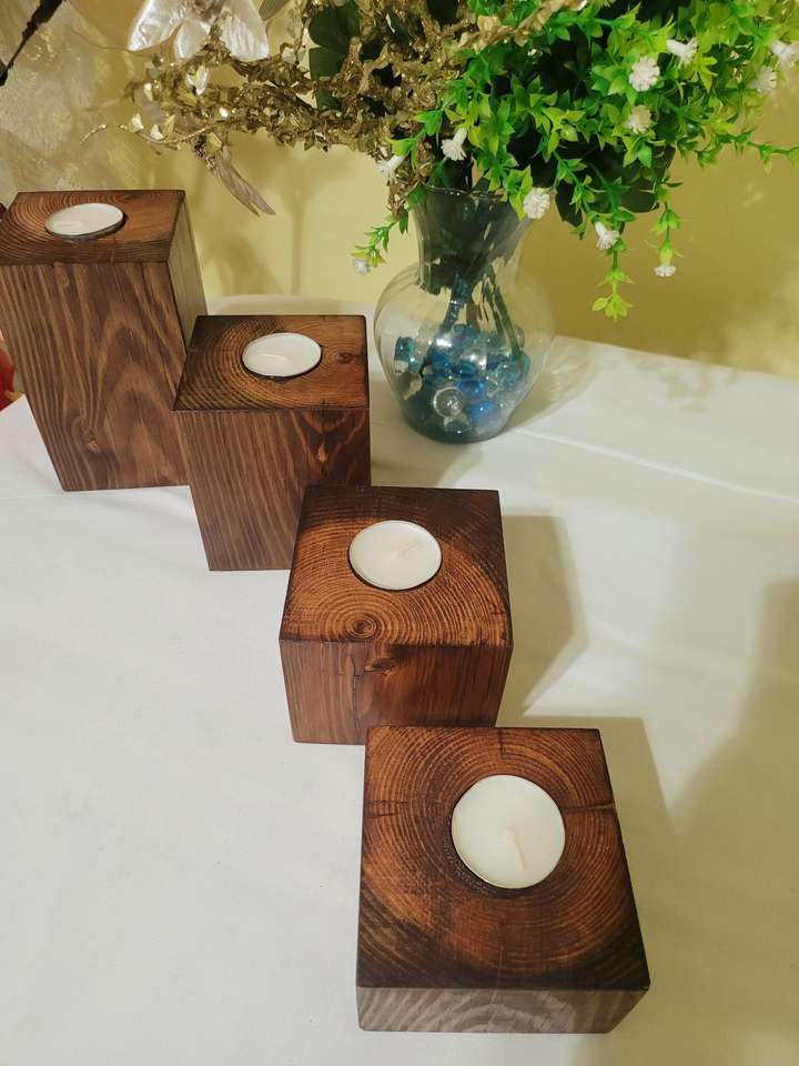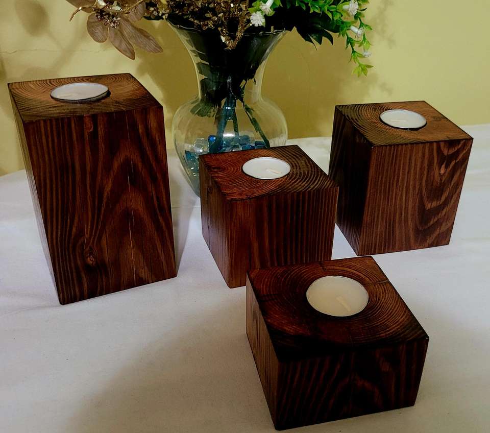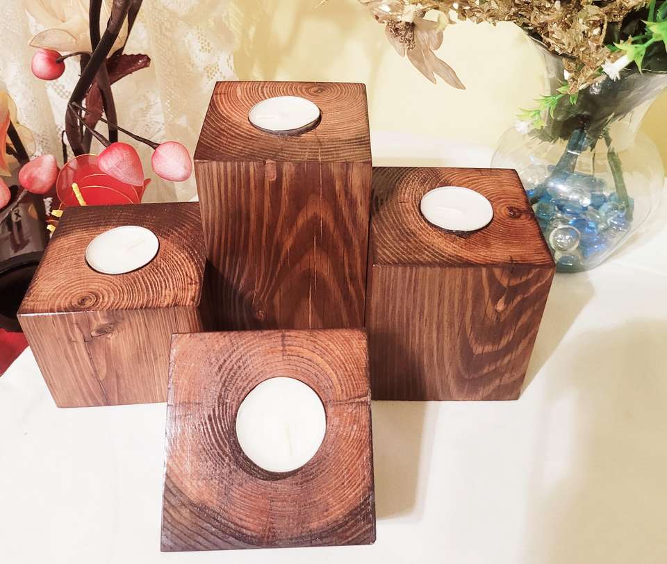 เชิงเทียนไม้ทำมือแบบยั่งยืน สไตล์โมเดิร์นรัสติก ให้แสงอบอุ่น ตกแต่งบ้าน สร้างบรรยากาศสบายๆ เหมาะสำหรับสปา คาเฟ่ ผลิตในอินเดีย