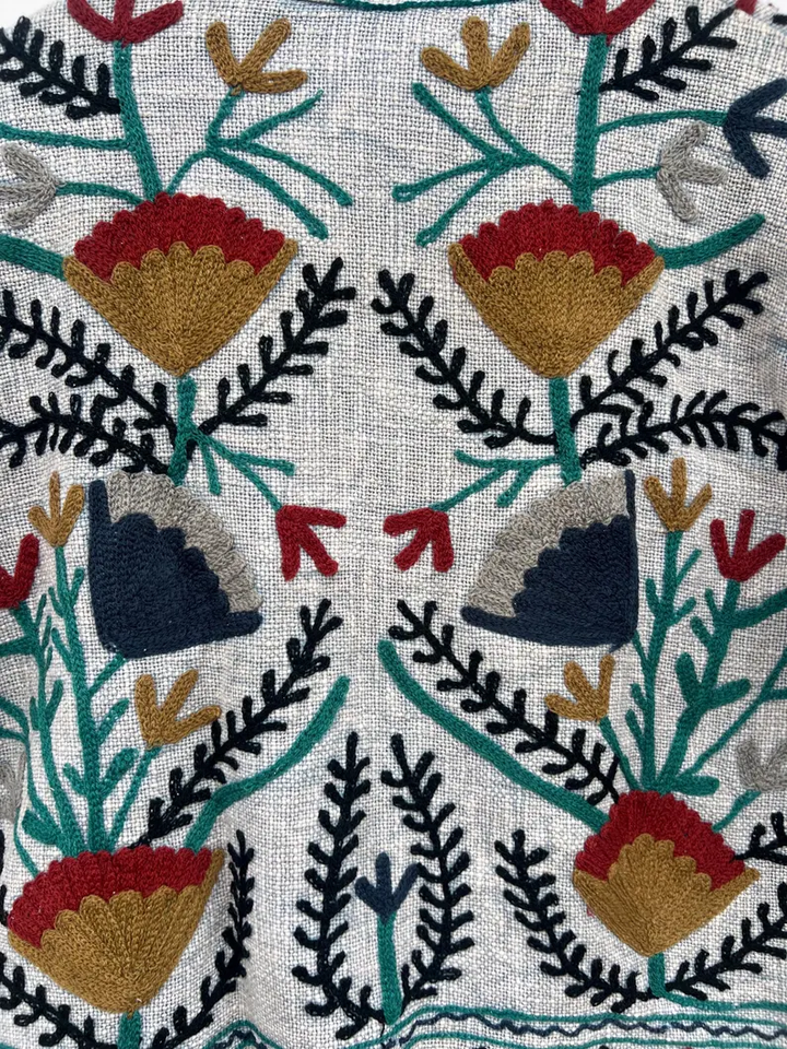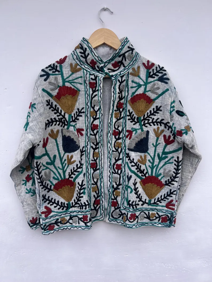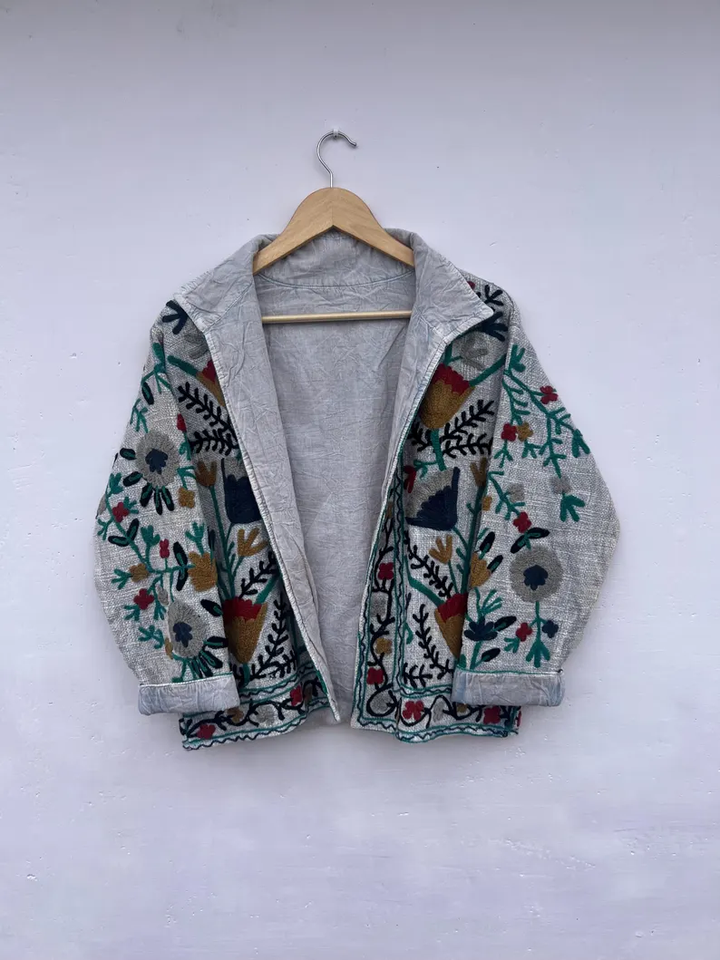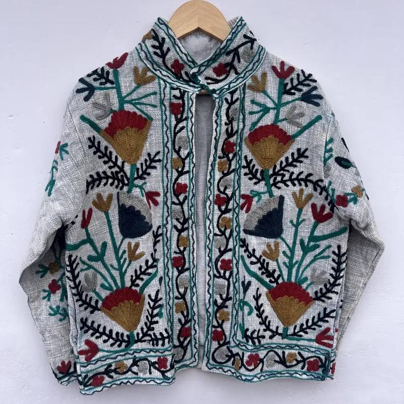 เสื้อแจ็คเก็ตฤดูหนาวไซส์ใหญ่ปักลายซูซานีทำมือแบบสองด้าน | เสื้อโค้ทขนเป็ดลายดอกไม้แบบเปิดด้านหน้า | ของขวัญสำหรับเธอ | เสื้อคลุมผ้าฝ้าย