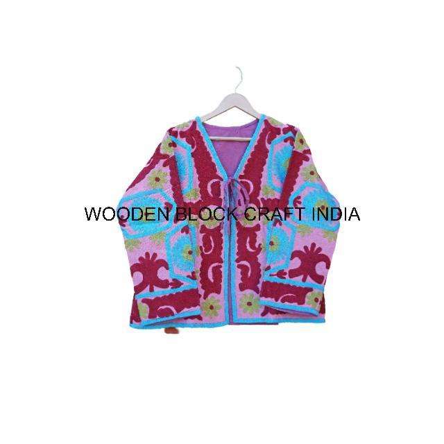 เสื้อแจ็คเก็ตผ้าฝ้ายถักลายปักซูซานีทำมือ 100% คอถอดได้ ระบายอากาศดี เป็นมิตรกับสิ่งแวดล้อม ลายดอกไม้ ใส่ได้ทุกฤดู