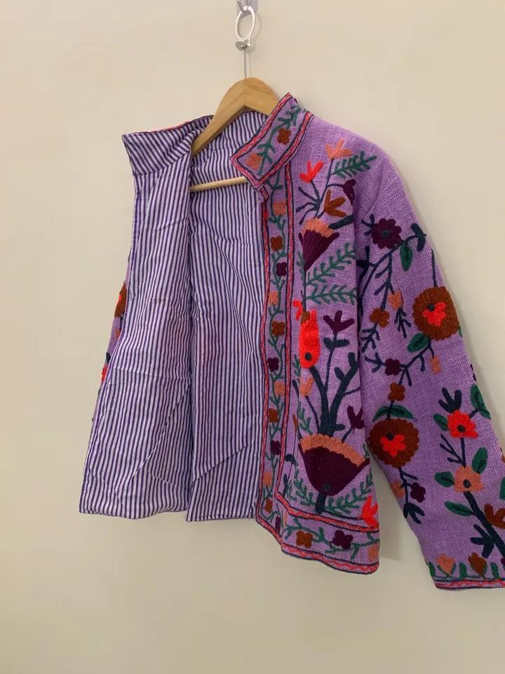 Suzani ทำด้วยมือ TNT เสื้อแจ็กเก็ตปักลายสไตล์โบฮีเมียนแบบมีปก
