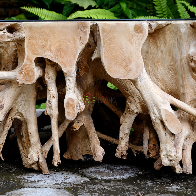 โต๊ะกาแฟรูปรากไม้สักทำด้วยมือจากประเทศอินโดนีเซียสำหรับห้องนั่งเล่นที่ไม่เหมือนใครในราคาที่ดี