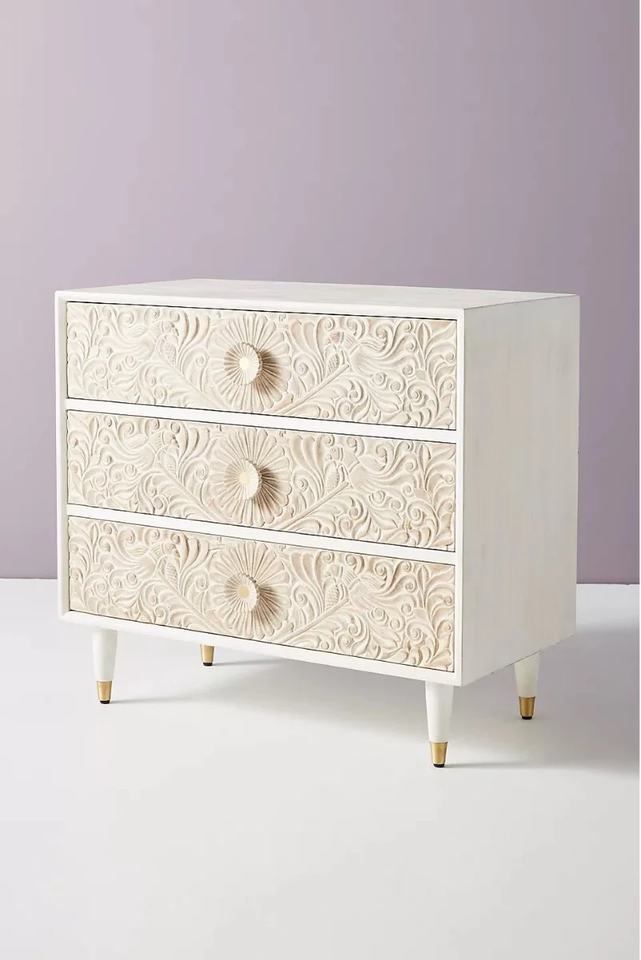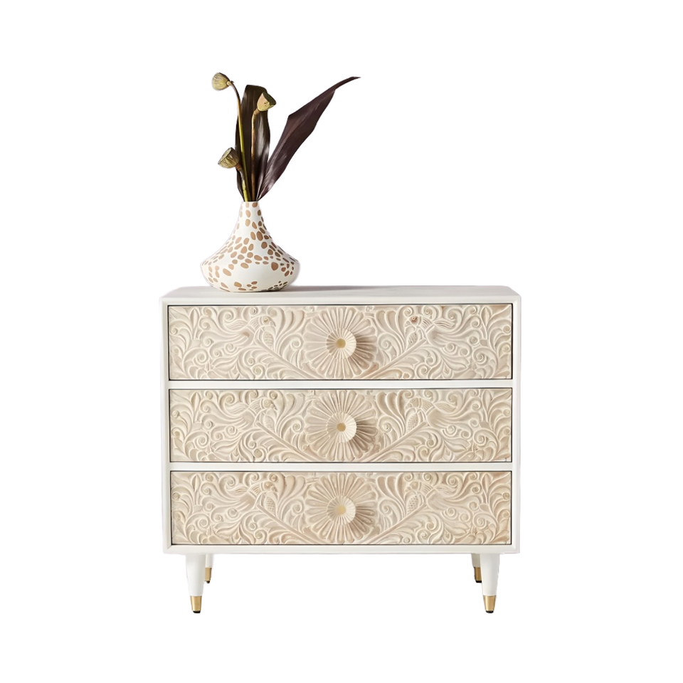 โต๊ะข้างเตียงทำจากไม้สักแบบทำมือ3ลิ้นชักทึบทึบกระจกทันสมัยทนทานเป็นมิตรกับสิ่งแวดล้อมสำหรับแต่งห้องนอน