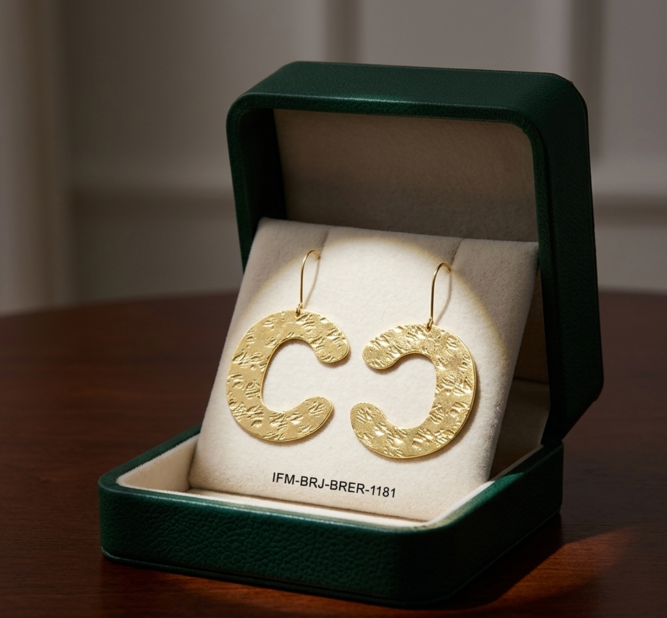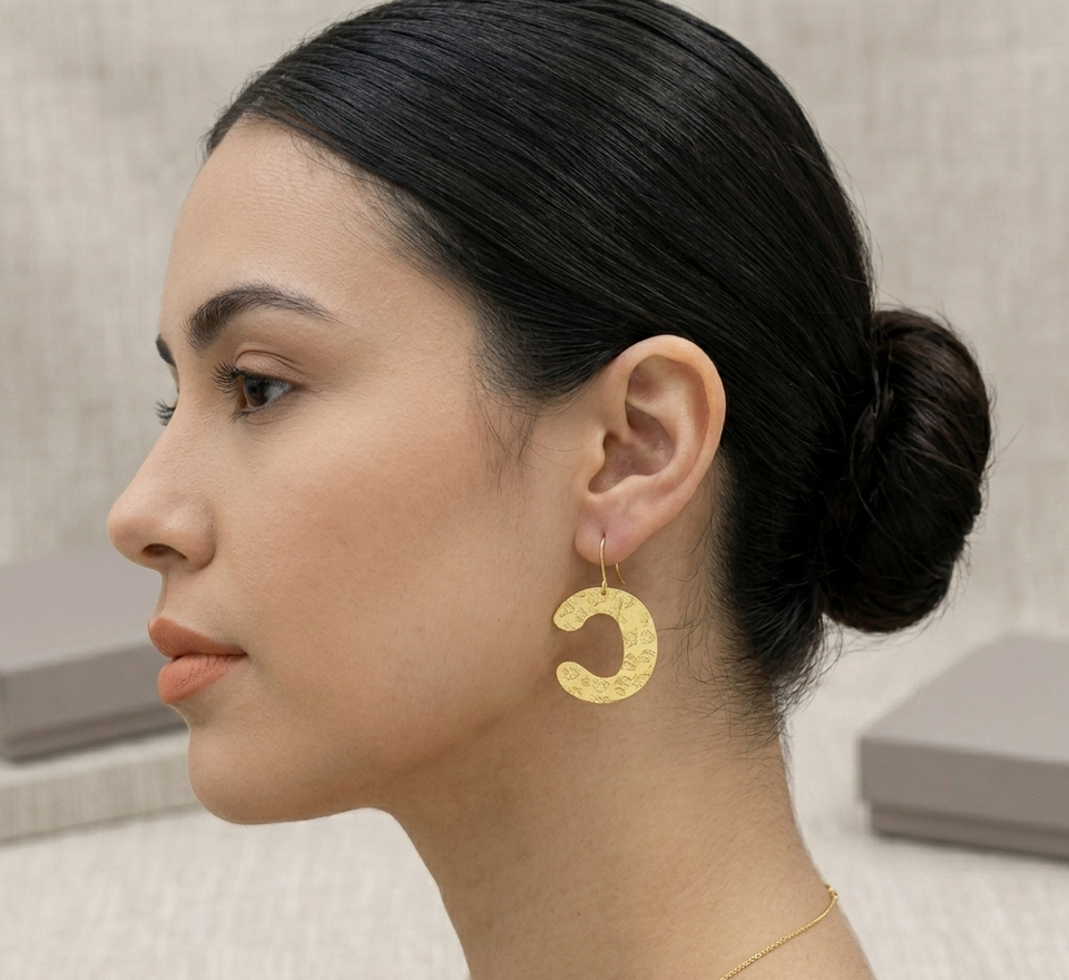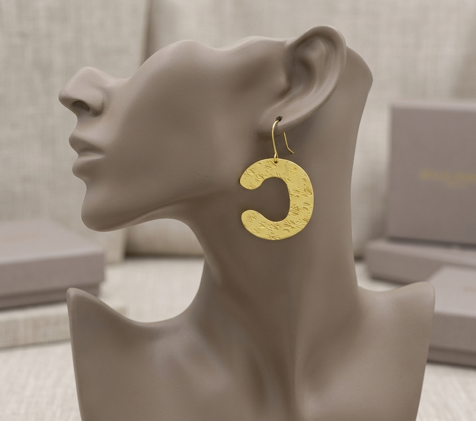 ห่วงทองเหลืองทำมือลายคริสเตียน ดีไซน์รูปตัว C ตะขอแบบไม่มีสารตะกั่ว ทนทานต่อการเกิดคราบ ผิวสัมผัสสีทอง คอลเลคชั่น Alphabetum Charisma