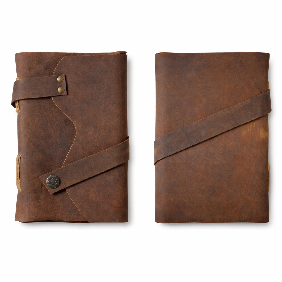 สมุดบันทึกหนังสีน้ำตาลหนาทำมือ - สมุดบันทึกแบบวินเทจพร้อมกระดาษขอบหยักโบราณ เหมาะสำหรับเป็นของขวัญองค์กร