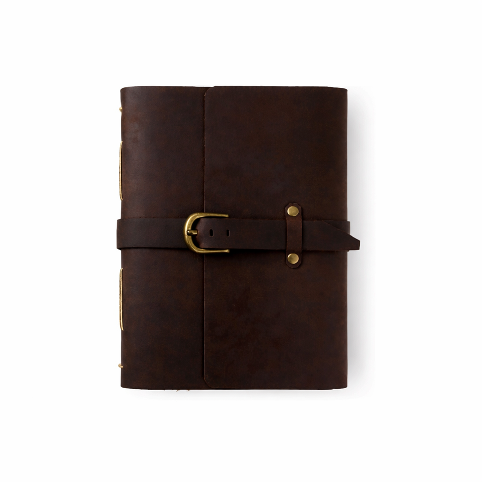 สมุดบันทึกหนังสีน้ำตาลหนาทำมือพร้อมปากกา - สมุดบันทึกแบบวินเทจและสมุดวาดภาพกระดาษขอบฉีกแบบโบราณ