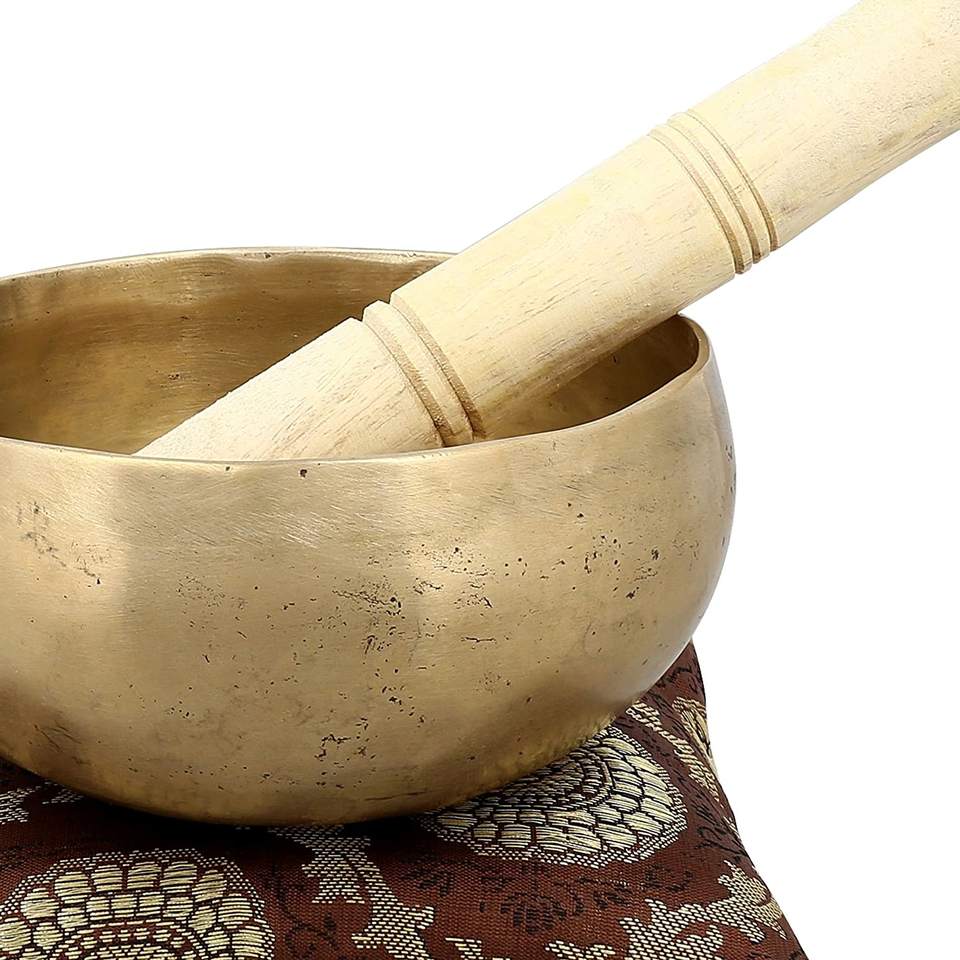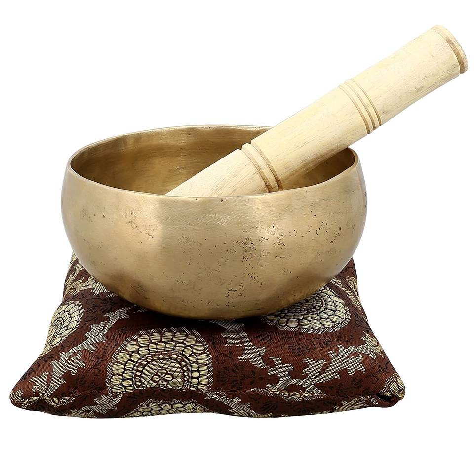 ชุดชามทองเหลืองทิเบตทำมือสำหรับชาวพุทธการทำสมาธิจักระหัวใจการรักษาศิลปะโยคะด้วยเทคนิคการชุบ