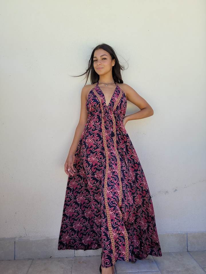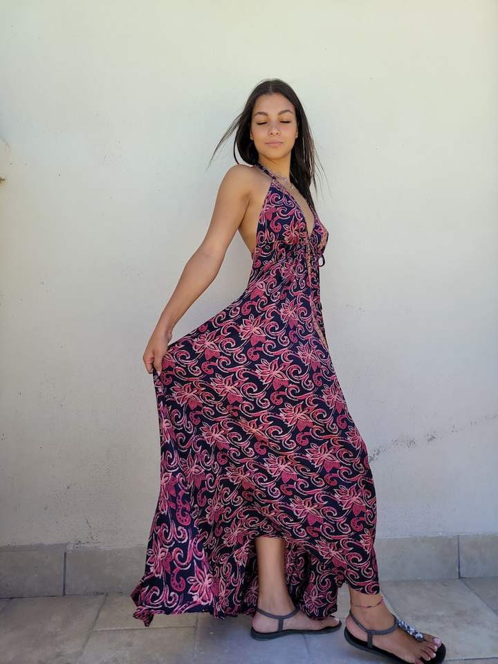 ชุดเดรสแม็กซี่โบฮีเมียนมัดย้อมทำด้วยมือชุดเดรสลำลองแบบผูกเชือกสำหรับงานเลี้ยงตอนเย็นชุดเดรสลำลองสุดฮอต