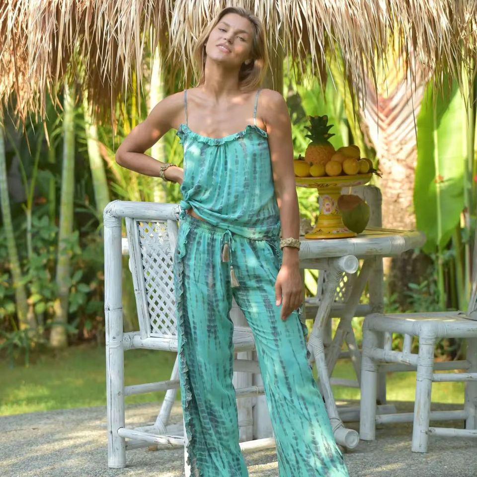 ชุดมัดย้อมทำมือสำหรับผู้หญิงชุดชายหาดผ้าทอและซักได้