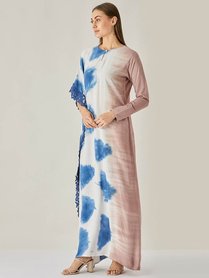 ชุดแม็กซี่เดรสยาวมัดย้อมสำหรับเด็กผู้หญิงชุดเดรสทรงหลวมแขนยาวสำหรับฤดูร้อนชายหาดรีสอร์ททำด้วยมือชุดเซ็กซี่ยาวถึงพื้นเป็นธรรมชาติ