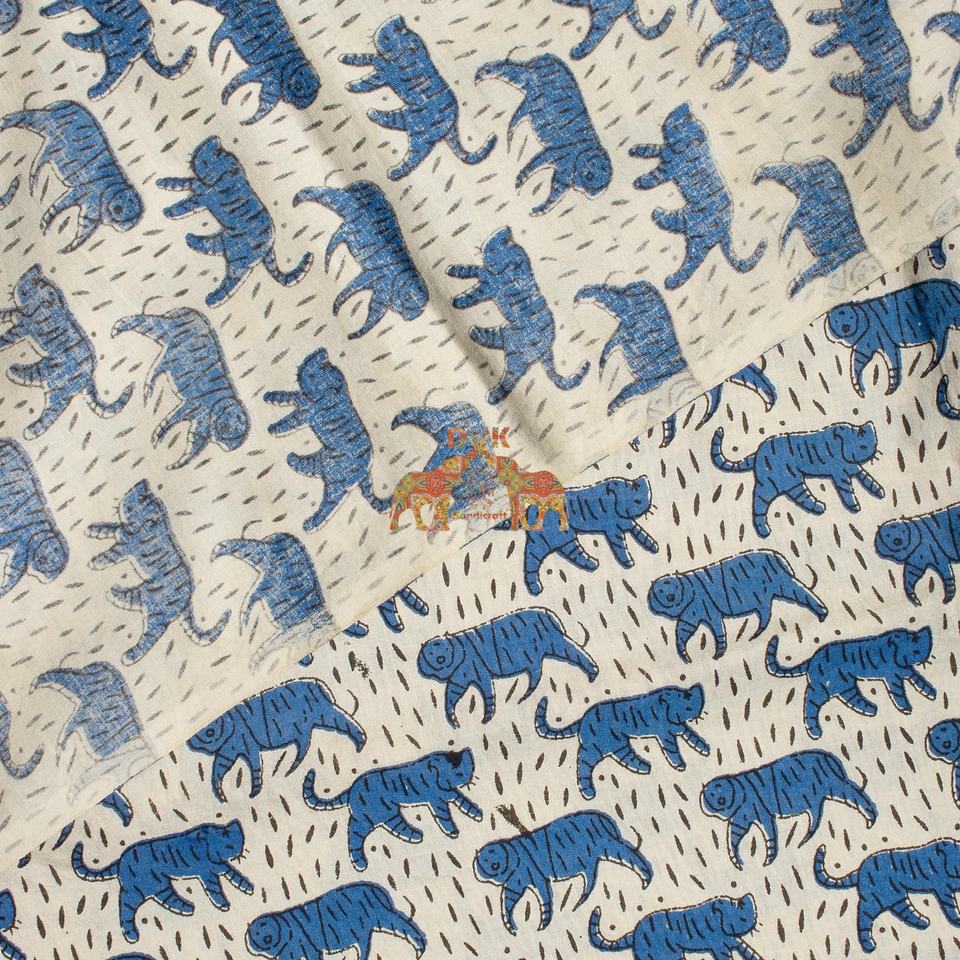 ผ้าฝ้ายธรรมชาติพิมพ์ลายเสือ งานแฮนด์เมด น้ำหนักเบา เหมาะสำหรับทำชุดเดรส