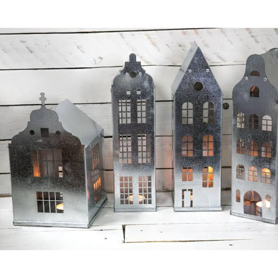 โคมไฟบ้านดีบุกทำมือ ที่ใส่เทียนโลหะทรงบ้านสไตล์ซิงค์ สำหรับตกแต่งคริสต์มาส ตกแต่งหน้าต่าง