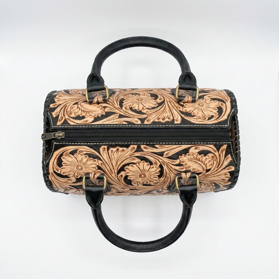 กระเป๋าเดินทางสุดหรูทำมือ ลายดอกไม้สไตล์ตะวันตก หนังแท้แกะสลัก กันน้ำ ขนาดใหญ่จุของได้เยอะ